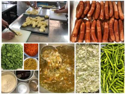 今日の給食では、ゆでたウインナーソーセージに、ケチャップ味のソースをかけています。