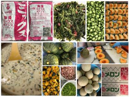 給食にもいろいろな種類の海そうが登場しています。のりや昆布、ひじき、わかめ、もずく、青のり、ミックス海そうなどがあります。