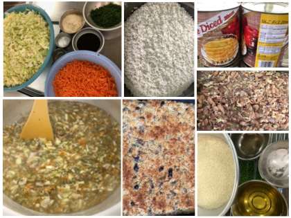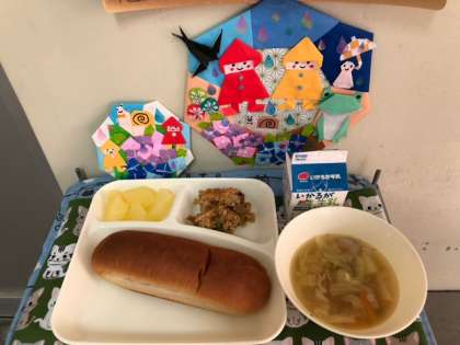 今日の給食では、米、鶏肉、たまねぎ、グリンピースを使用し、カレールウの素やクリームなどを加えたものにパン粉と粉チーズをかけて焼き物機で焼いた、「カレードリア」が登場しました。