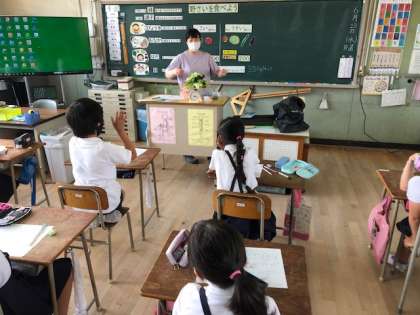 体の調子を整える野菜のはたらきについて考えました。野菜のグループ分けを知り、色の濃い野菜を100グラム、色のうすい野菜を200グラム、合わせて一日に300グラムの野菜を食べると良いことを学びました。