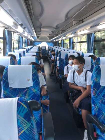 社SAで、1回目の休憩をし、9:05出発しました。クイズなどのレクレーションも楽しんでいます。