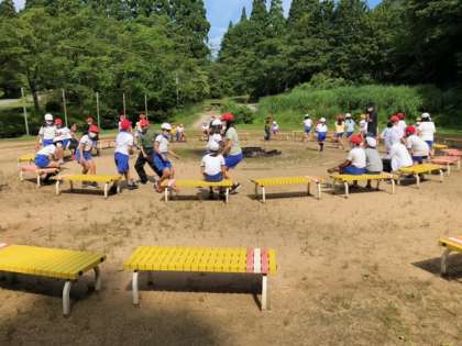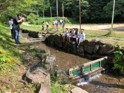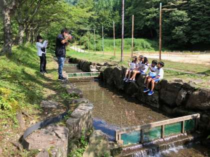 小川で写真撮影した後、ゲーム遊び(フルーツバスケット)で少し体を動かして、まだ眠っている体を目覚めさせました。