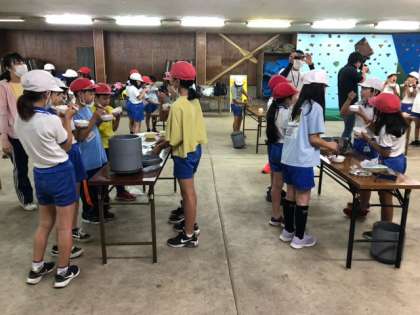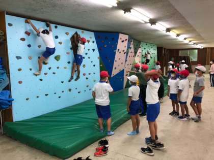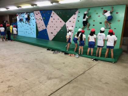 各班の児童は、手作りアイスクリームをいただいた後、体育館内のあるボルダリング施設にチャレンジさせてもらいました。