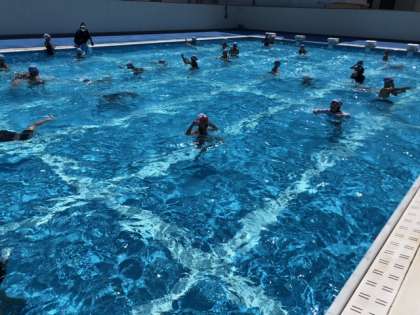 2学期が始まって、好天が続いています。今日のプール水泳学習では2年生と4年生が、暑さをしのぎながら水中での身体活動を楽しんでいました。