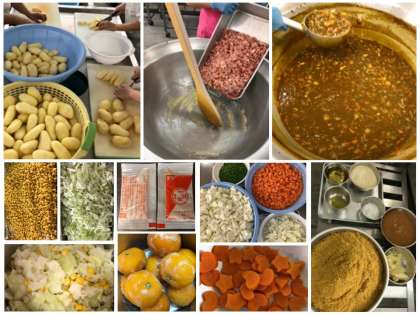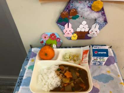 今日の「キャベツとコーンのサラダ」には、卵を使用しないで作った、『ノンエッグドレッシング(マヨネーズ風の調味料)』を使っています。卵アレルギーのある児童に配慮した献立となっています。