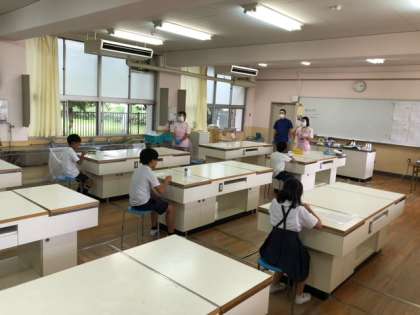 4年生と5年生が 歯のフッ化物洗口を学校歯科医の先生と歯科衛生士の先生の指導で行いました。フッ化物洗口をすることで歯の健康を保ち一生にわたって大切にすることを学びました。