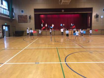10月3日の運動会に向けて、応援団が結成されました。毎日、放課後に練習に取り組んでくれています。新型コロナウイルス感染症の予防に様々な制限がされる中でも、6年生が中心になって5年生も4年生も自分たちの運動会を盛り上げようと意欲満々で取り組んでいます。