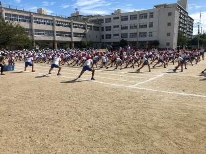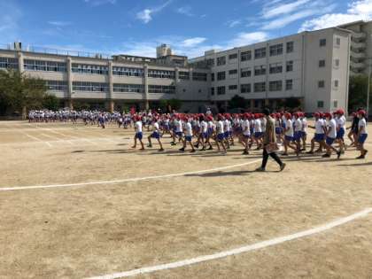 入場、体操隊形、整理体操、閉会式の練習をしました。