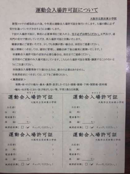 下の写真は、以前に配付しました「運動会入場許可証」の文書です。