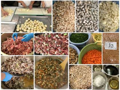 ツナ大豆そぼろは、ゆでて砕いた「大豆(ひきわり)」を使用しています。しょうがを香りよくいためたところに、ツナ、大豆(ひきわり)を加え、砂糖、しょうゆなどで味つけして作ります。