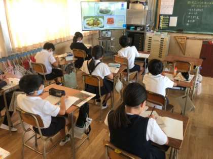 5年生は、家庭科で「食品や調理の目的に合ったゆで方を知ろう。」のめあてで様々な野菜のゆで方について学びました。次週は、学んだことを実習します。
