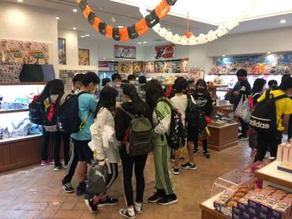 ホテルのお土産売り場で、あれこれ真剣に品定めをして買い物をしていました。