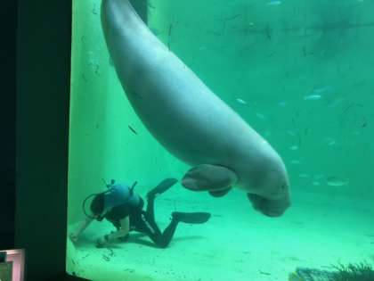 昨夜のセミナーを参考にジュゴンやラッコのコーナーに足を運び関心を持って見学していました。