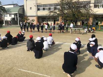 今朝の児童集会は、後期の児童会代表の紹介となかよし班活動でのアニメソングクイズをしました。