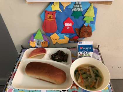 今日の給食では、青森県産の「ふじ」が登場しました。とても瑞々しく、甘みがしっかりとしたりんごで、子どもたちにも好評でした。