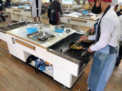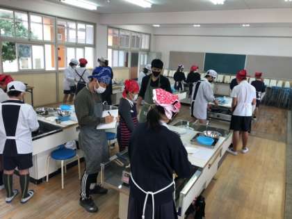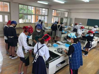 6年生が、家庭科「工夫しよう楽しい食事」の学習で調理実習をしました。