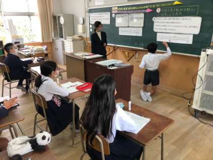 5年生は、算数科単元「分数と小数、整数の関係を調べよう」で、分数と小数、整数の関係を理解し、整数についてわり算の商を分数の形に表すことについて学んでいます。また、そのよさを生活や学習に活かすことができることを目標に学習を進めていきます。