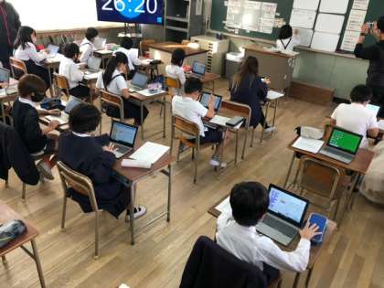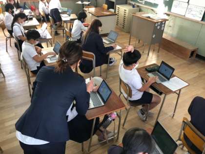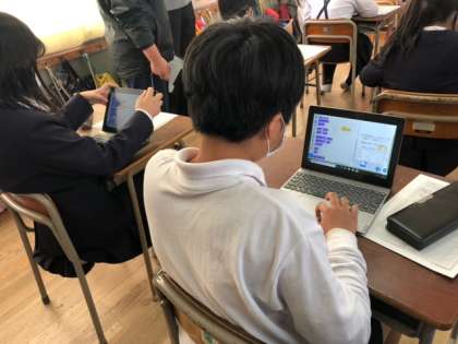 4年生が、社会科「大阪府に伝わる祭りや行事と先人たち」の学習で調べたことをもとにクイズをつくるプログラミングをして学習を深めました。
