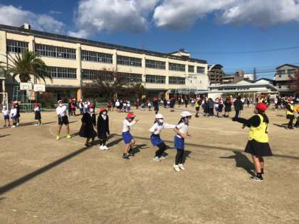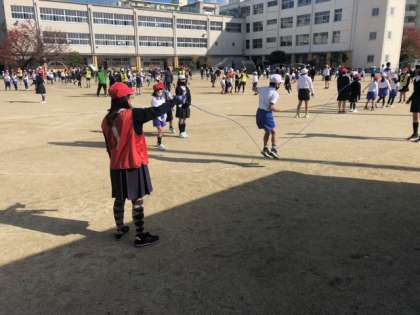 今週は、2時間目後の休み時間を利用して、たてわり班で大なわでなわとびを26日(金)までします。6年生がリードして、上手に大なわを回し、楽しく体力づくりに取り組みます。