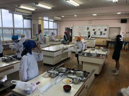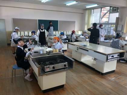 5年生が、家庭科単元「だしのきいたおいしいみそ汁を作ろう」の学習で調理実習をしました。「みそ汁」の調理を通して料理の基本を学びました。