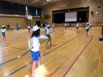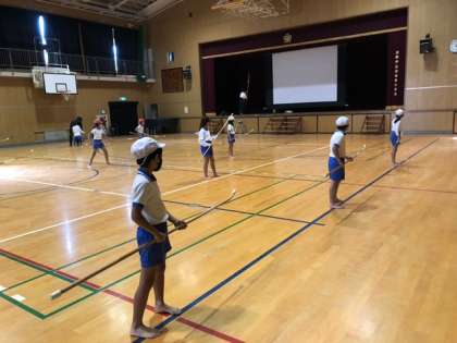 4年生も、なぎなた体験をしました。1回の授業ですが、講師の先生の話をよく聞き、模範の動きをよく見て、真剣に取り組んでいました。