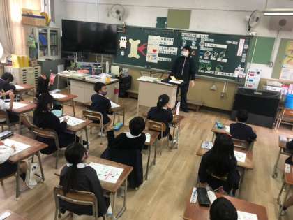 1年生が、食に関する指導「カルシウムについてしろう」で、カルシウムを多く含む食べものを知るとともに、「骨や歯をつくる、心臓の動きを助ける、止血する。」といったはたらきについて学びました。