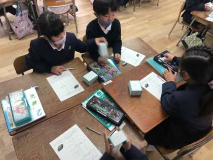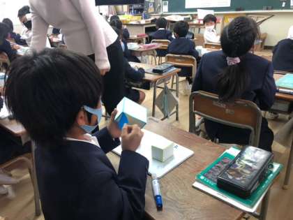 2年生が、算数科「はこの形」を学習しました。面の形に注目して、箱を分類することができることと箱作りに必要な要素を考えることができるようにフローチャートを使って学びました。