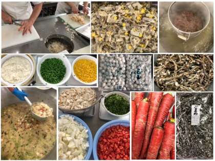 給食では、金時にんじんを使用し、関西風の白みそ仕立てのぞう煮です。
