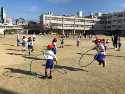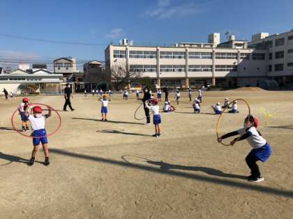今朝もとても寒くなりましたが、1年生は、短なわや大なわでなわとびをしたり、輪をなわとびのようにしたりして運動を楽しんでいます。