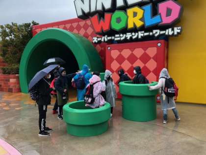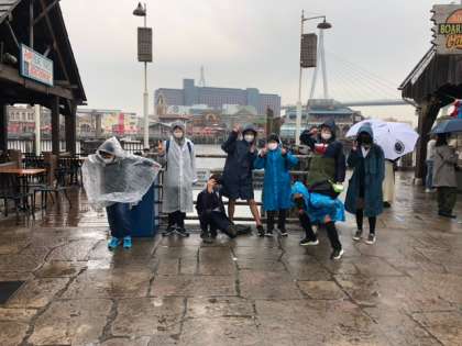 雨の中でも、友だちと一緒なら楽しい思い出作りができています。