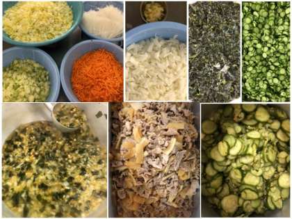今日の給食では、蒸したきゅうりに、砂糖、塩、米酢、うすくちしょうゆ、ごま油、いりごまで味付けをしています。