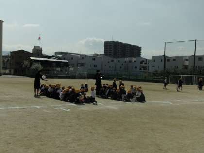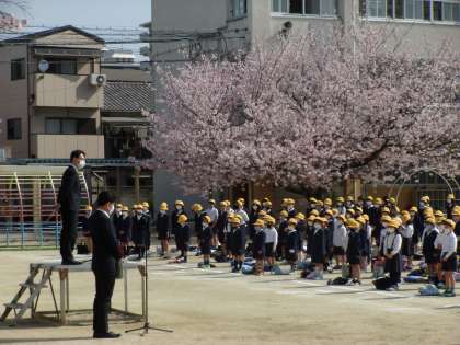 それぞれ1学年ずつ進級した2〜6年生の子どもたちは、きちんと整列し、静かに話を聞くことができました。さすがです!