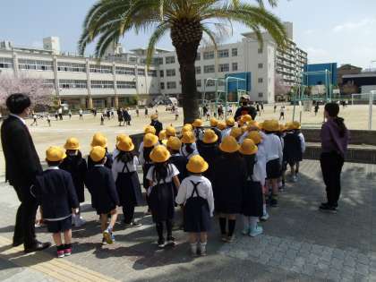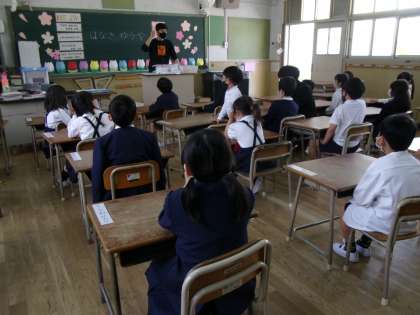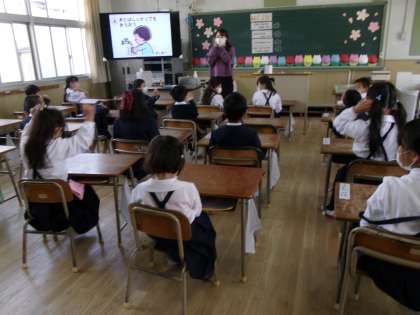 1年生は教室でしっかりと先生の話を聞こうと頑張っていました。