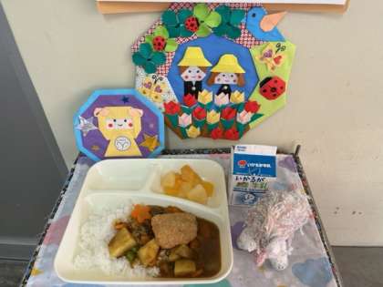 今日は、給食調理員さんが「サクラ」の形のラッキーにんじんを用意してくださり、子どもたちも喜んで食べていました。