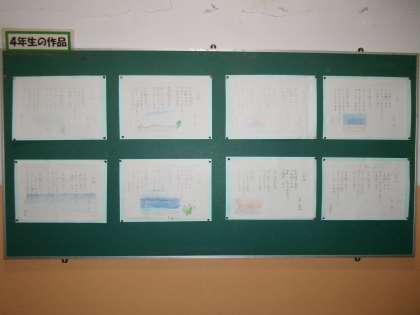 1階には1年生の入学をお祝いする作品が、他の学年は国語科の詩の書写等が掲示されています。来校の際には、各教室や学年掲示板でも子どもたちの頑張りを見ていただければと思います。
