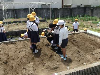 理科の学習で、ほうせんかとマリーゴールドの種を学習園に植えました。