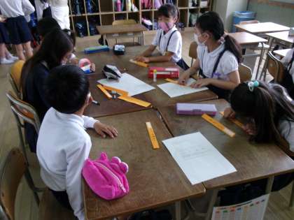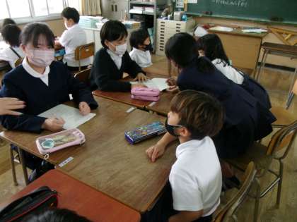 2時間目に1〜6年の異なった学年で構成された「なかよし班」での活動がありました。今年度初の顔合わせなので、みんな少し恥ずかしそうにしていましたが、高学年が低学年の子どもたちにやさしく話しかけリードしながらやるべき予定をすすめてくれました。