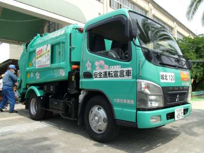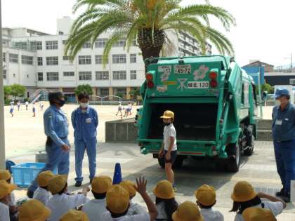 大阪市環境事業局の方にお越しいただき、パッカー車の見学を実施しました。