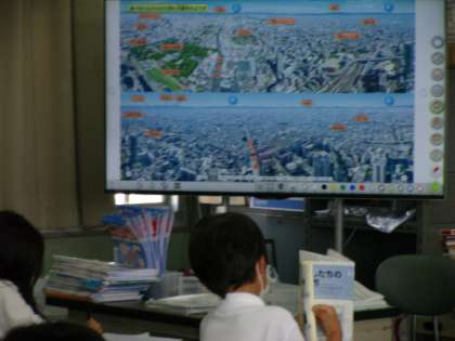 鶴見区など「区」を調べたり、教室から見た時の「東西南北」の方向を確認したりしました。