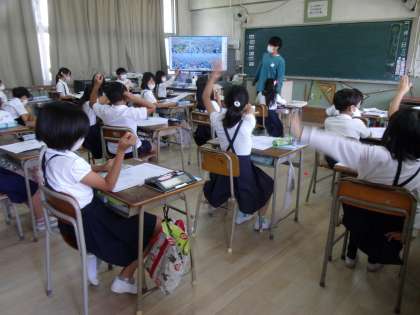 担任が「校長先生が今いる方向は?」と尋ねると、子どもたちが元気よく「東」と答えていました。