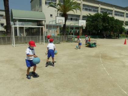 体育の学習では、走ったり、登ったり、ボールを投げたりついたりと、体力向上やバランス感覚を養う活動に取り組んでいます。