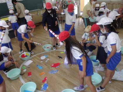 なぞ解きに宝探し、魚釣りにタワーづくり、雪の女王アナとメイちゃんのコラボ劇など、子どもたちのアイデアいっぱいの楽しいお店がありました。