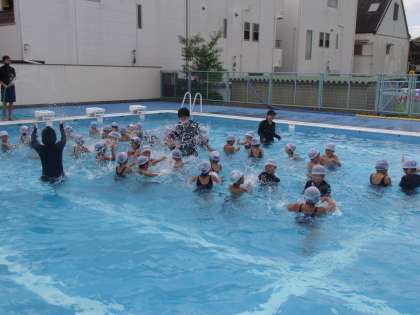1年生は本日が1学期最後のプールでの活動となりました。水をかけあったり、潜ったり、バディで協力して浮いたりと、いろいろな動きを楽しみました。バディでお互いの体の安全も確認しながら活動できました。この1か月でたくさん成長が見られた1年生でした。