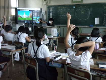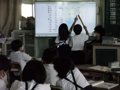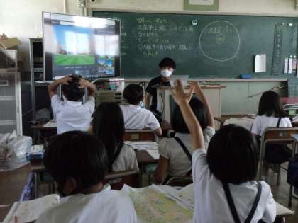 地図を見て調べたり、気づいたことを電子黒板を使って発表したりしました。