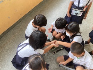 そんな中、子どもたちは、トランプやけん玉、コマ回し、ダンス練習にタブレット、読書に生き物観察と、安全に気をつけて活動し、友だちと楽しんでいました。