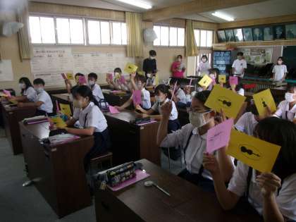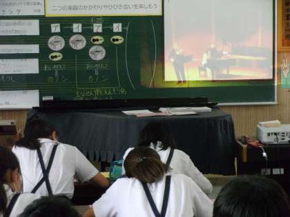 今日の午後は6年生が「カノン」をリコーダーで演奏したり、「バイオリンとピアノのためのソナタ」の2つの楽器のかかわりやひびき合いに着目して鑑賞したりしました。