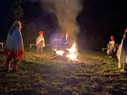 雨の心配もなく、満月のもと、キャンプファイヤーを実施しました。各グループからのクイズやビンゴなどの出し物があり、みんなで楽しみました。キャンプファイヤーが終わる頃には、星空がはっきりと見えました。青木先生より、夏の大三角形などの説明をいただいた後、花火もみんなで楽しみました。校長先生もみんなの仮装も素敵でした。子どもたちはみんなぐっすり眠っていました。