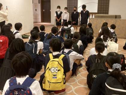 朝の会、朝食、閉舎式を終え、海の博物館、鳥羽水族館などに向かいます。子どもたちは、みな元気に2日目の活動をはじめています。