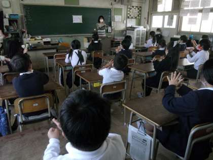 今日は、おはなしサークル「でんでんむし」の方々より、全学年学級でお話会をしていただきました。