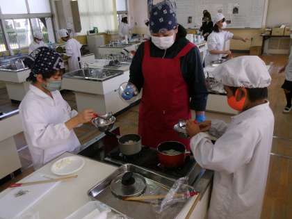 11日(金)に家庭科の調理実習で「みそ汁」を作りました。